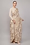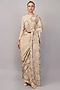 Beige Organza Metallic Sequins Hand Embroidered Saree