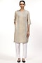 Featuring a beige and black kurta in cellulose blend base with embroidery and hand block printed stripes. This contains only one piece.