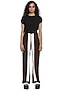 Featuring black and white wide-legged pants in crepe base with striped patchwork. This contains only one piece.