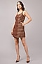 Featuring a burgundy brocade woven mini dress in silk georgette base with gold sequins embellishment. Accentuate it with stud earrings and heels for an evening look.
