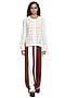 Featuring burgundy and white wide-legged pants in crepe base with striped patchwork. This contains only one piece.