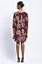 Featuring a purple mini dress in georgette base with floral embroidery. Accentuate it with dangler earrings, a sling bag and block heels for any special events or casual wear.