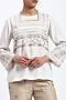 Featuring a white top in crepe base with metallic crewel sequins embroidery and geometric pattern. Accentuate it with pants, dangler earrings and heels for a casual wear.