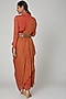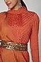 Coral Embellished Draped Dress With Belt