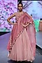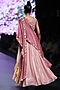 Featuring a pink maxi dress in organza and lame knit fabric with attached drape. It has beads, pipes, and sequins floral embroidery.
