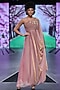 Featuring a pink maxi dress in lame knit fabric with drape. It has beads, pipes, and sequins floral embroidery.