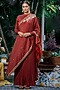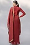 Featuring a red dress in crinkle jacquard and raw silk base with floral embellishment.
