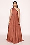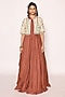 Rusty Red & Beige Silk Applique Embellished Maxi Jacket Dress