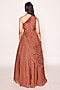 Featuring a rusty red maxi dress in silk, tissue and zari blend base with applique, sequins and bead embellishments. It is paired with a beige jacket having applique, sequins and beads hand work. Accentuate it with statement earrings and heels for cocktail parties.