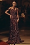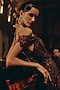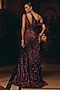 Burgundy Bemberg Silk & Net Embroidered Off-Shoulder Gown