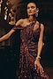 Featuring a burgundy off-shoulder gown in bemberg silk, satin and net base with a sculpted drape, an asymmetric neckline and hand embroidery. Accentuate with diamond jewellery, a sleek bun and a crystal clutch bag for a cocktail, wedding or engagement ceremonies and ace the royal look.