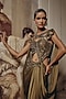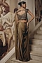 Olive Net & Satin Chiffon Embroidered Draped Saree