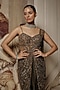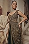 Featuring an olive draped saree in satin chiffon and net base with embroidery. Accentuate with diamond jewellery and heels for a wedding or engagement ceremonies and ace the royal look.