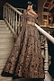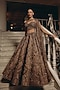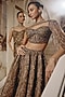 Featuring an olive lehenga in bamberg silk, satin and net base with embroidery. It is paired with an embroidered blouse having an attached dupatta. Accentuate with diamond jewellery and heels for a wedding or engagement ceremonies and ace the royal look.