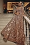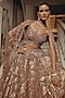 Featuring a pink gold lehenga in satin organza and net base with sequins, beads, and crystal embellishments. It is paired with an embroidered blouse having an attached dupatta. Accentuate with diamond jewellery and heels for a wedding or engagement ceremonies and ace the royal look.