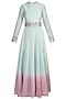 Featuring a blue dip dyed anarkali kurta in chanderi base with organza applique and cutdana hand embroidery. It is paired with matching net dupatta having frills detailing.