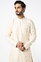 Pale Yellow Art Dupion Silk Floral Jaal Embroidered Kurta Set