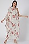 Featuring a mint green one shoulder kurta in viscose georgette base with a flared sleeve and red floral print. It is paired with matching printed pants.