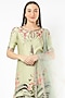 Featuring a sage green kurta in modal satin base with floral print, resham and sequins embroidery. It is paired with matching printed sharara pants and a net dupatta.
