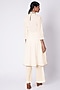 Featuring a white front open tunic in mul cotton and dobby base with hand embroidered choker neck. It has lace detailing. This contains only one piece.