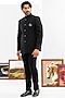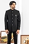 Featuring a black jodhpuri in japanese fabric base. It is paired with pants. Style it with shoes for a reception, wedding, sangeet or engagement ceremony.