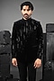 Featuring a black tuxedo in velvet base with beadwork. It is paired with pants. Style it with shoes for a reception, wedding, sangeet or engagement ceremony.