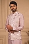 Featuring a lilac bundi jacket in dupion silk base with bird motifs and foil applique work. It is paired with a kurta and pants. Perfect wear for a wedding, sangeet or engagement ceremony, exuding charm and elegance.