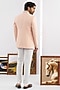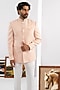 Featuring a peach jodhpuri in matka fabric base. It is paired with pants. Style it with shoes for a reception, wedding, sangeet or engagement ceremony.