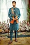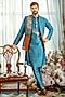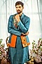 Teal Blue & Rust Ombre Silk Hand Embellished Nehru Jacket Set