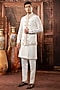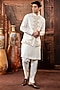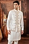 Featuring a white jacket in dupion silk base with embroidery. It is paired with a kurta and pants. Style it with shoes for a reception, wedding, sangeet or engagement ceremony.