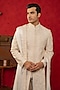 White Dupion Silk Resham Embroidered Sherwani Set