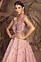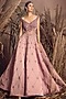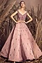 Featuring a lilac off-shoulder gown in crepe base with crystal, sequins and glass beads embroidery.