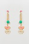 Featuring a pair of gold finish enameled dangler lotus charm earrings, set in brass.