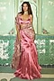 Featuring a blush pink pre-stitched fish-cut saree in crushed silk and tissue base, adorned with thread, dori, gota and sequins embroidery. It is paired with a blouse and a belt. Style this designer set with polki jewellery, metallic high heels and an embellished potli bag, perfect for a sangeet nights, cocktail soirees, or pre-wedding celebrations.
