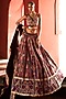 Featuring a dark purple lehenga in jamawar silk base with zari and beads applique embroidery. It is paired with a blouse having hand embroidery, pearls and latkan detailing, including a velvet dupatta and a handmade belt. Accentuate it with gold jewellery and heels for a bridal look.