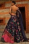 Featuring a dark teal blue lehenga in paithani silk base with pearls, zari sequins and mirror embellishments. It is paired with a silk sleeveless blouse having a V-neckline, beads and applique hand embroidery, including a shimmer tissue dupatta and a handmade belt. Accentuate it with gold jewellery and heels for a bridal look.