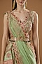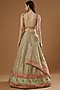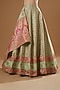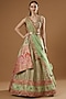 Featuring a pista green lehenga in banarasi silk base with gota, pearl and sequins work. It is paired with a matching silk blouse having resham, mirror and shimmer embroidery, an organza dupatta and a meenakari belt.