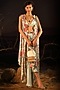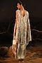 Featuring a powder blue draped skirt in satin base with bandhani print. It comes with a blouse, a beaded cape and a meenakari belt. Perfect for cocktail or party wear.