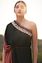 Featuring a black and onion pink one shoulder dress in silk base with aari embroidery. It is paired with a matching dori.