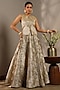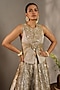 Featuring a gold and silver top in tissue base with embellishment. It is paired with a crush gota skirt. Accentuate it with statement earrings and heels for a festive look or sangeet ceremonies.