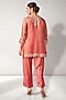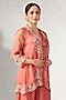 Featuring a peach cape in organza and pure modal satin base with cutwork embroidery. It is paired with a top and pants. Accentuate with statement earrings and heels for festive ceremonies.