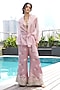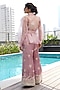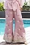 Rose Pink Silk Linen Gara Embroidered Flared Pant Set