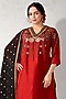 Featuring a rust kurta in cotton silk base with embroidery. It is paired with fit and flared pants and a dupatta. Accentuate it with statement earrings and heels for a festive look.