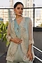 Featuring a sea blue and dull green cape in organza and heavy pure modal satin base with embroidery. It is paired with pants and an inner. Accentuate it with statement earrings and heels for festive ceremonies.