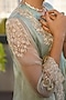 Sea Blue & Dull Green Organza Embroidered Cape Set