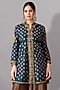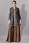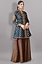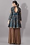 Featuring a teal kali tunic in cotton silk base with embroidery. It is paired with crush tissue sharara pants. Accentuate with statement jewellery and heels for a festive occasions.