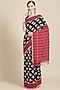 Featuring a black and red handloom saree in pure cotton base with ikkat print, geometric motifs work and an attached unstitched blouse. Accentuate it with statement jewellery and heels for a festive occasion.