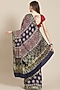 Blue Modal Silk Ajrakh Block Printed Saree