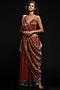 Featuring a rani bralet top in handwoven silk zari base with hand embroidery. It is paired with matching wide palazzo pants and a pure tissue handwoven dupatta having hand embroidery.