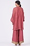 Featuring a rose pink short kurta in handloom chanderi base with silk thread and tikki embroidery. It is paired with matching palazzo pants in linen base and a dupatta.